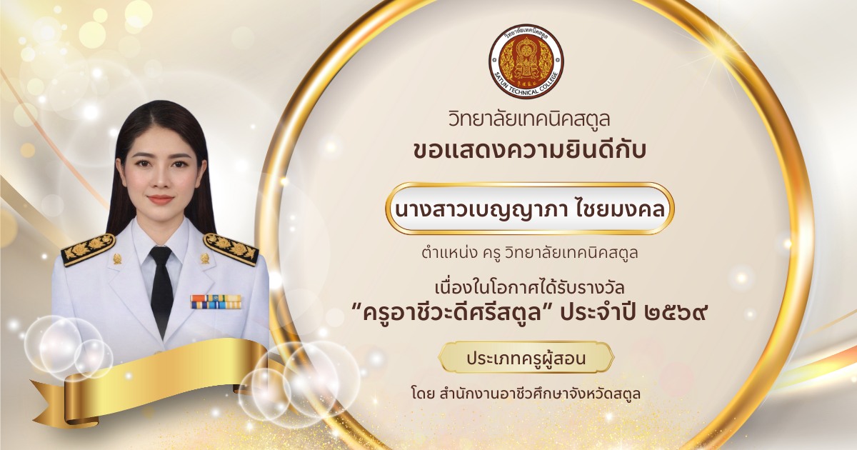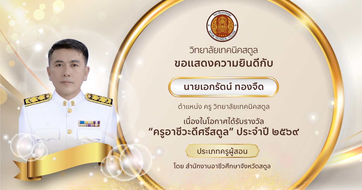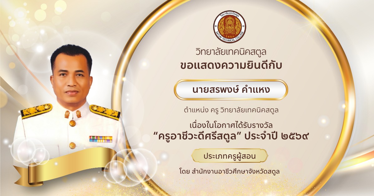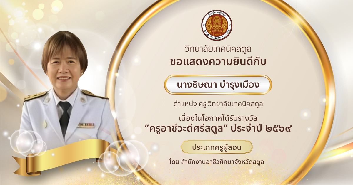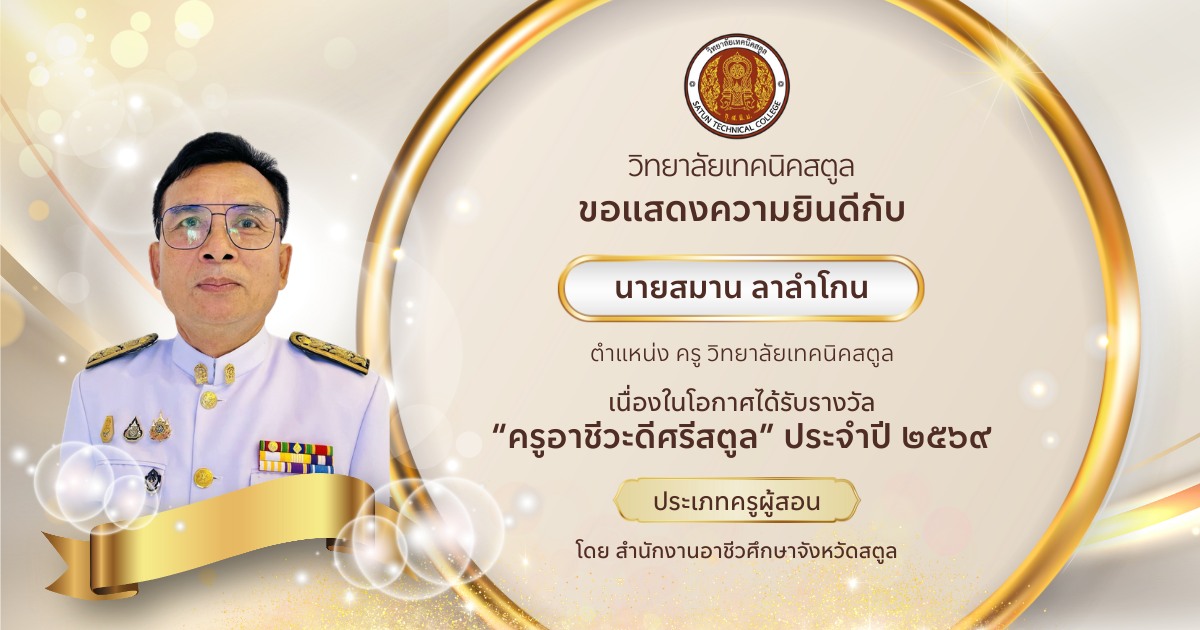 ขอขอบคุณผู้ปกครองนักเรียนนักศึกษาที่ให้ความไว้วางใจวิทยาลัยเทคนิคสตูล ที่ให้ความร่วมมืออย่างดีในกิจกรรมต่างๆ ของวิทยาลัยฯ ขอขอบใจนักเรียนนักศึกษาทุกคนที่ปฏิบัติตนอยู่ในระเบียบของวิทยาลัยฯ