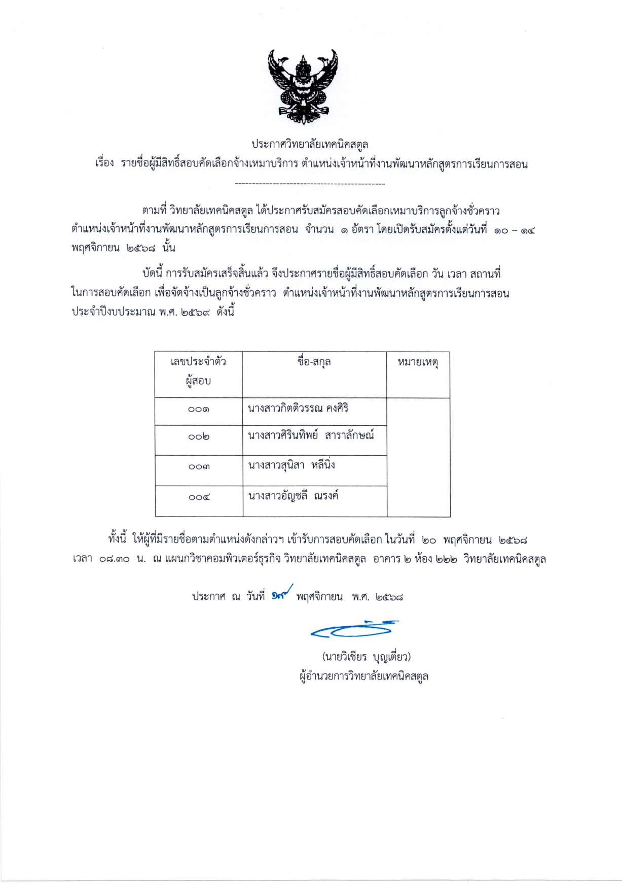 ITA วิทยาลัยเทคนิคสตูล 2568
