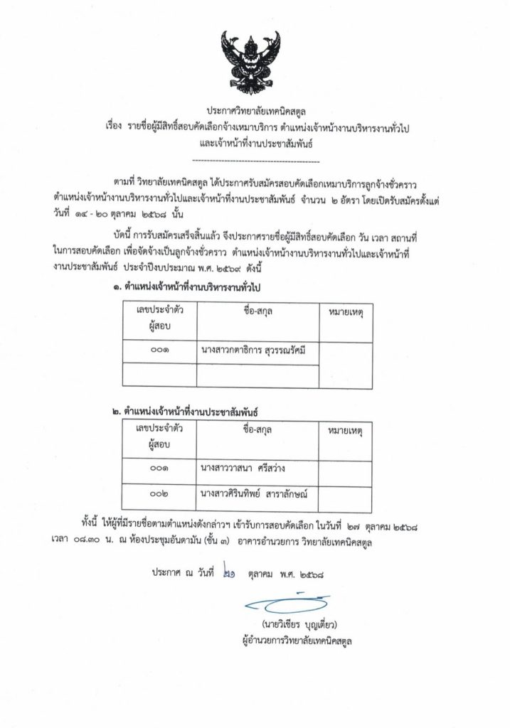 ประกาศรายชื่อผู้มีสิทธิ์สอบคัดเลือกจ้างเหมาบริการ ตำแหน่งเจ้าหน้าที่งานบริหารงานทั่วไปและเจ้าหน้าที่งานประชาสัมพันธ์ 25 ต.ค. 256829 ต.ค. 2025R-Cheevaประกาศ ประกาศวิทยาลัยเทคนิคสตูล เรื่อง รายชื่อผู้มีสิทธิ์สอบคัดเลือกจ้างเหมาบริการ ตำแหน่งเจ้าหน้าที่งานบริหารงานทั่วไปและเจ้าหน้าที่งานประชาสัมพันธ์ จำนวนผู้เข้าชม : 16