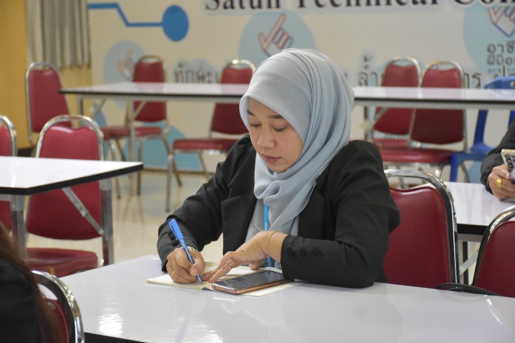 นายวิเชียร บุญเตี่ยว ผู้อํานวยการวิทยาลัยเทคนิคสตูล พร้อมด้วยนายปิยพงศ์ สังวาลย์ รองผู้อำนวยการฝ่ายวิชาการ คณะครู บุคลากร วิทยาลัยเทคนิคสตูล และ คณะครูศูนย์ฝึกอบรมวิชาชีพ อำเภอควนโดน ร่วมประชุมเตรียมความพร้อมหลักสูตรต่อเนื่องเชื่อมโยงอาชีวศึกษากับการศึกษาขั้นพื้นฐาน