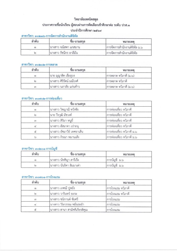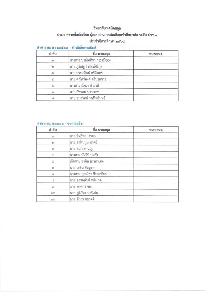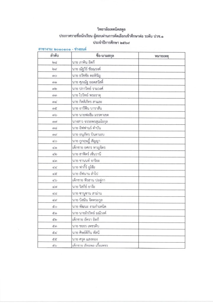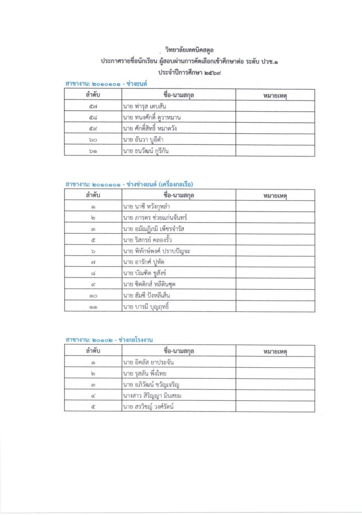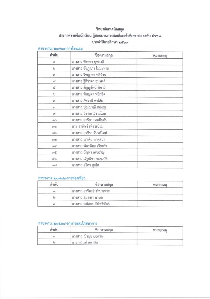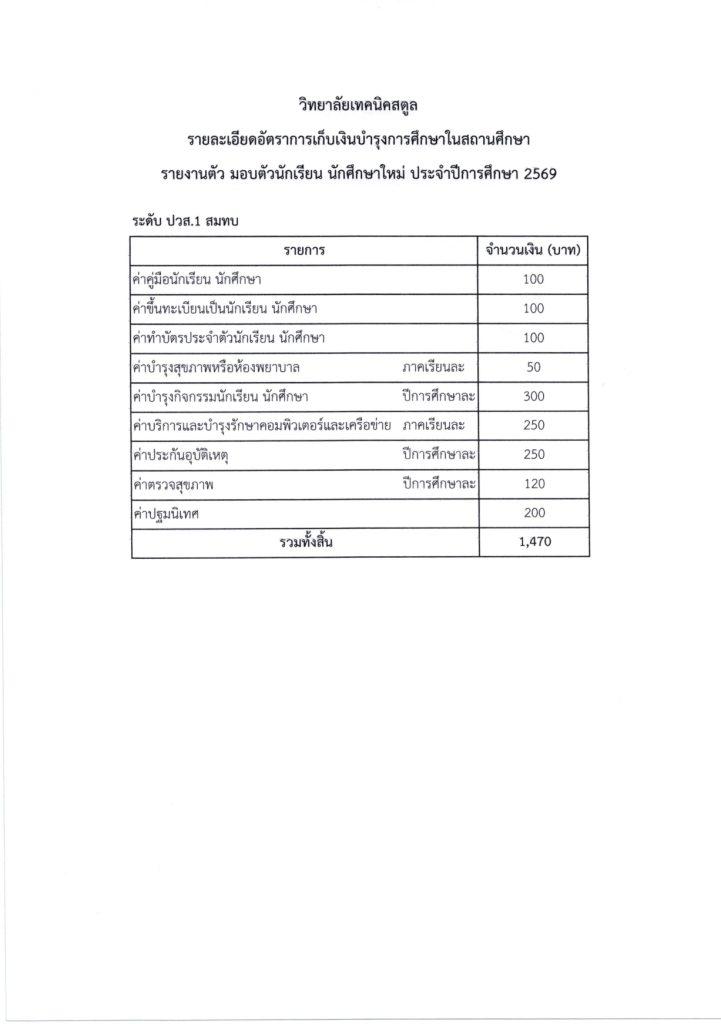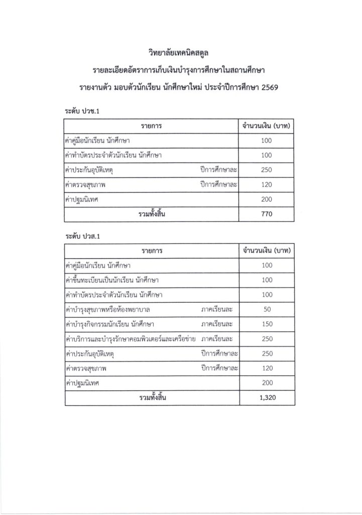 ประกาศรายชื่อผู้ผ่านการคัดเลือกเข้าศึกษาต่อ วิทยาลัยเทคนิคสตูล ประจำปีการศึกษา 2569