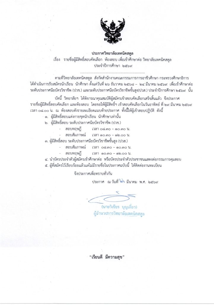 ประกาศรายชื่อผู้มีสิทธิ์สอบคัดเลือก/ห้องสอบ